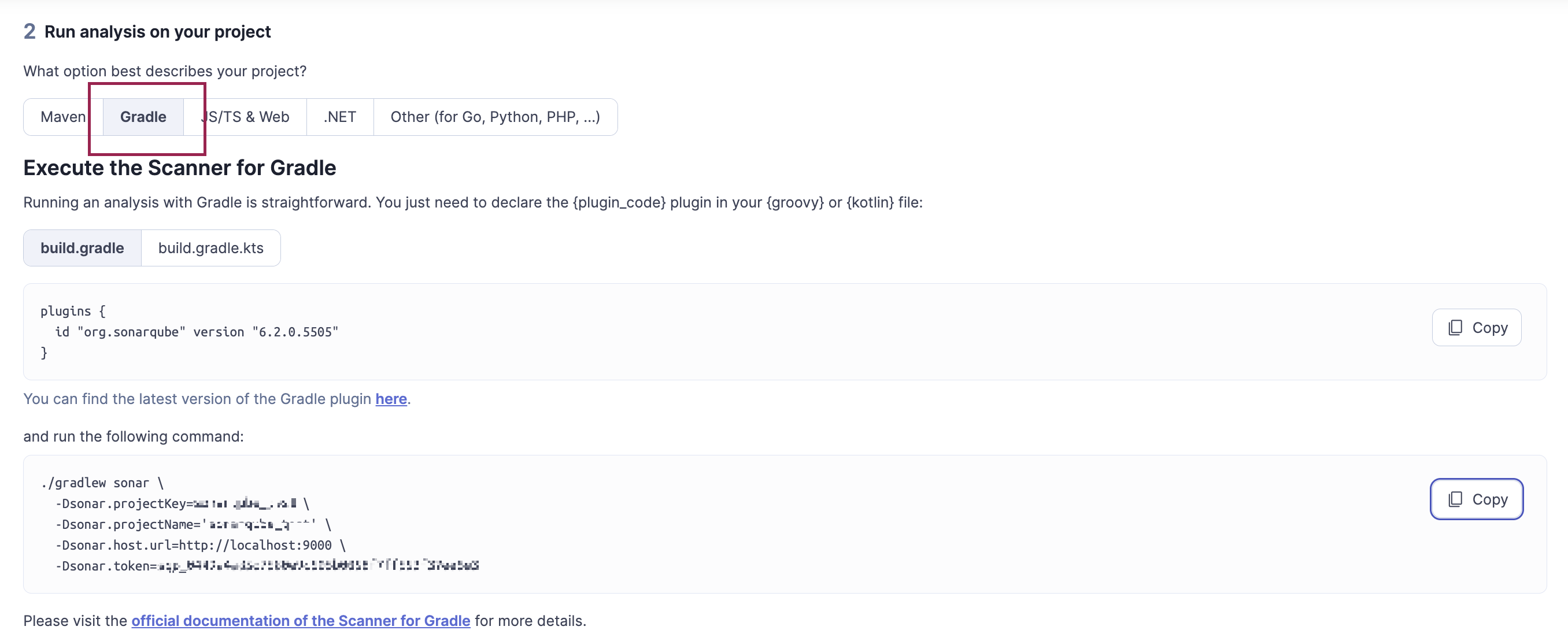 6. 프로젝트 설정에 맞는 빌드 방식 선택 (나는 Gradle에서 진행) 후 복사